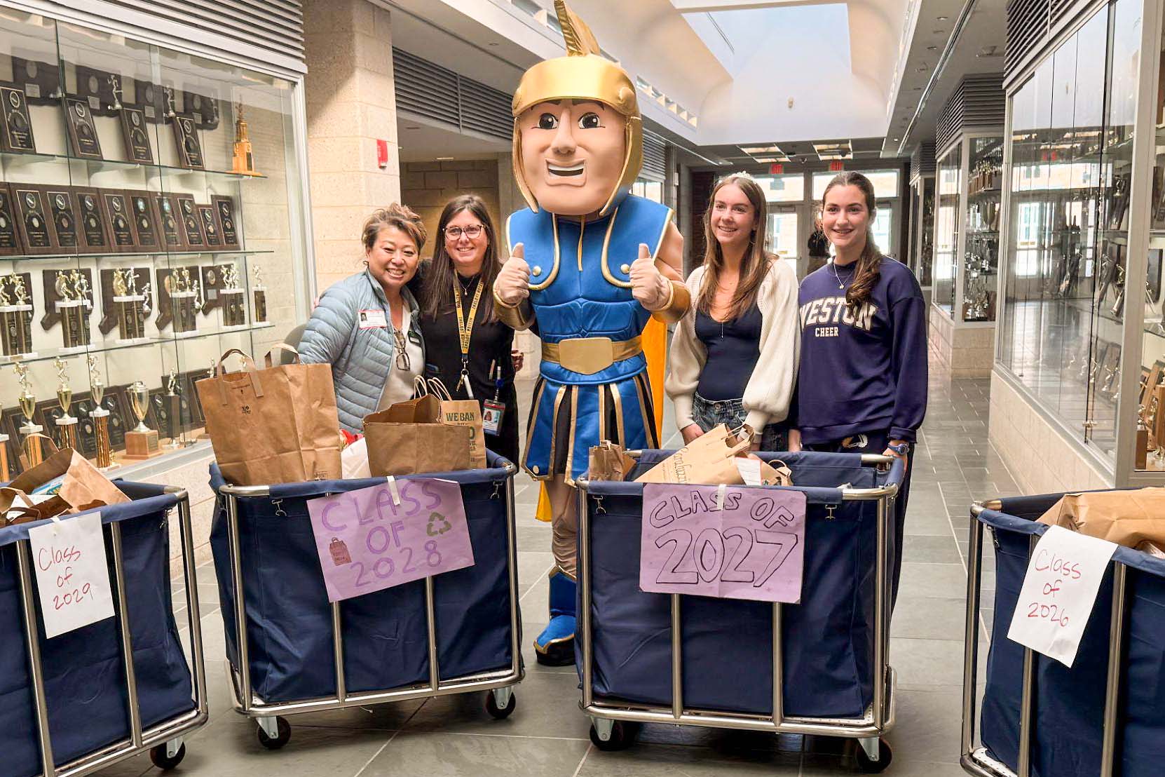 The rally at Weston High School collected more than 900 pounds of food for Person-to-Person, and a new mascot debuted.