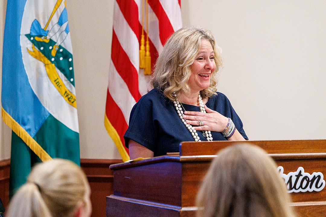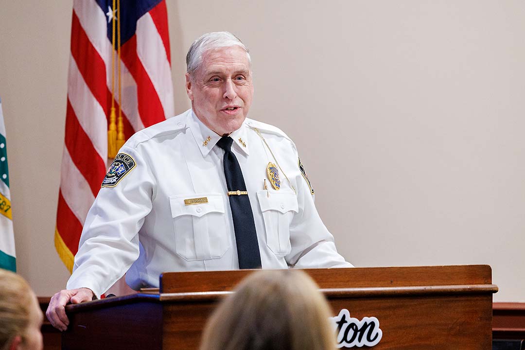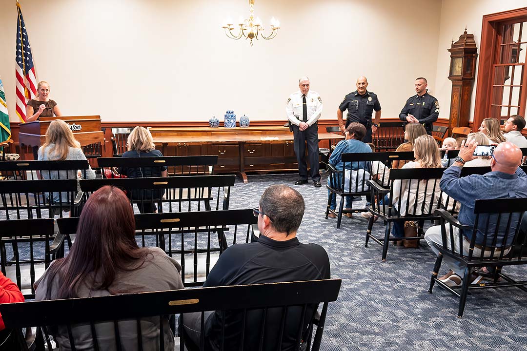 Police Commission chair Dawn Egan officiated, describing Sgt. Vichiola as “an integral and highly respected member of the Weston Police Department, deeply engaged in the community, with an approachable nature and genuine compassion.”