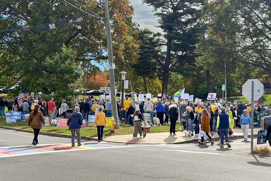 Hundreds took to the streets in Westport on Saturday, October 18, part of a nationwide “No Kings” protest.