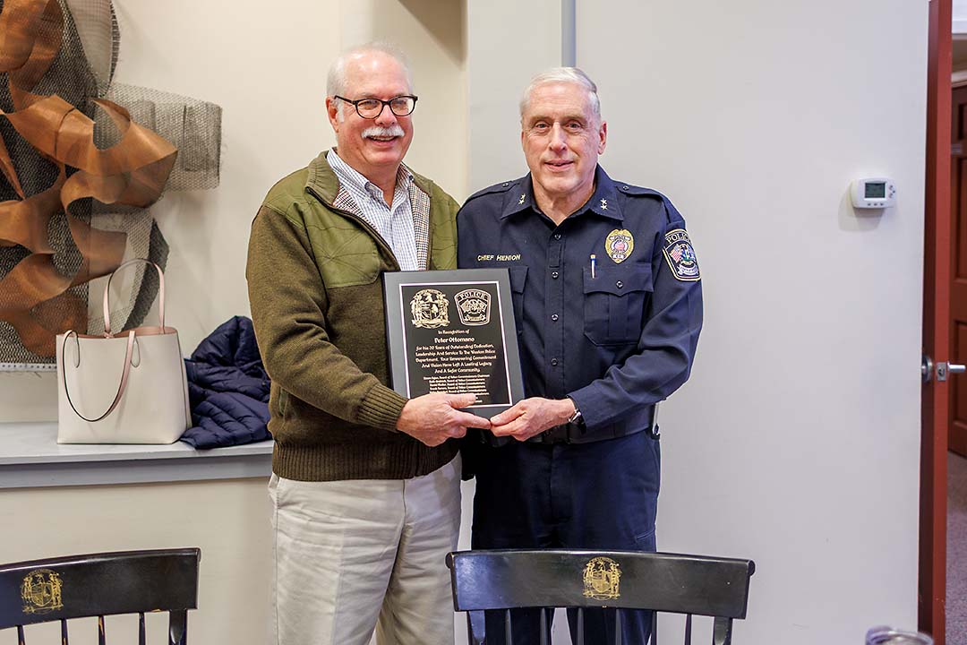 The Weston Board of Police Commissioners said goodbye to two long-serving members on November 5: 30-year member Peter Ottomano and Dawn Egan, a member for the past ten years.