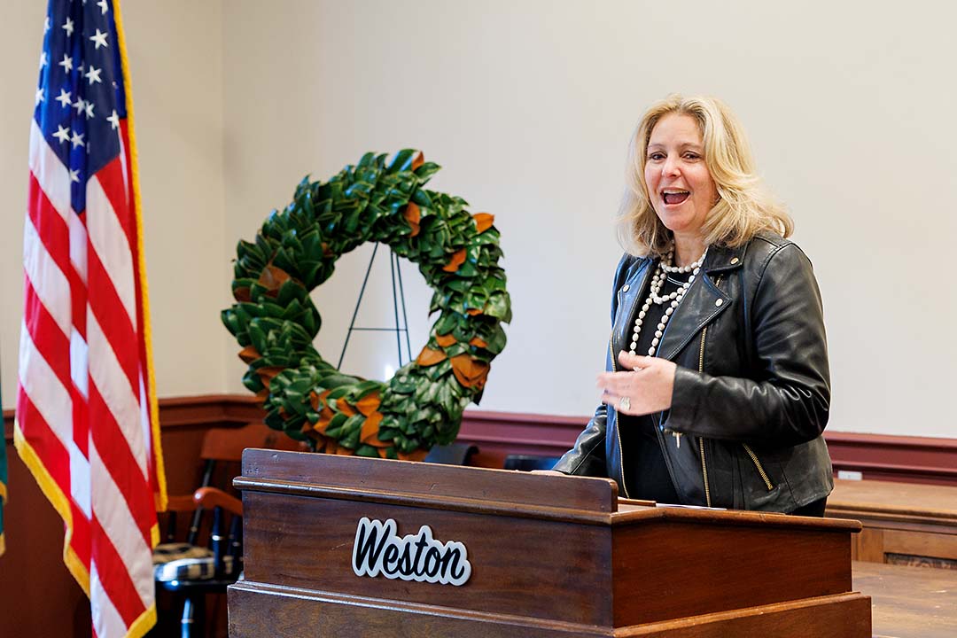 Rabbi Michael Friedman of Temple Israel delivered the invocation, and the Weston High School Choral Group sang the National Anthem.