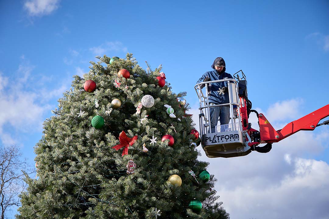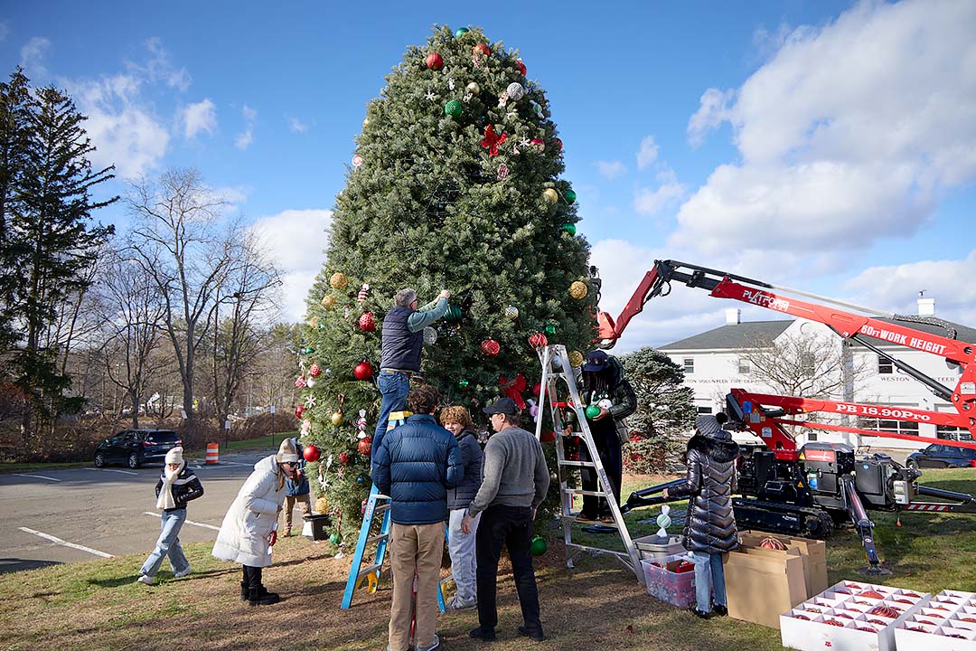 The tree is trimmed and ready for Thursday evening’s Holiday Music Festival & Tree Lighting on the Town Green.