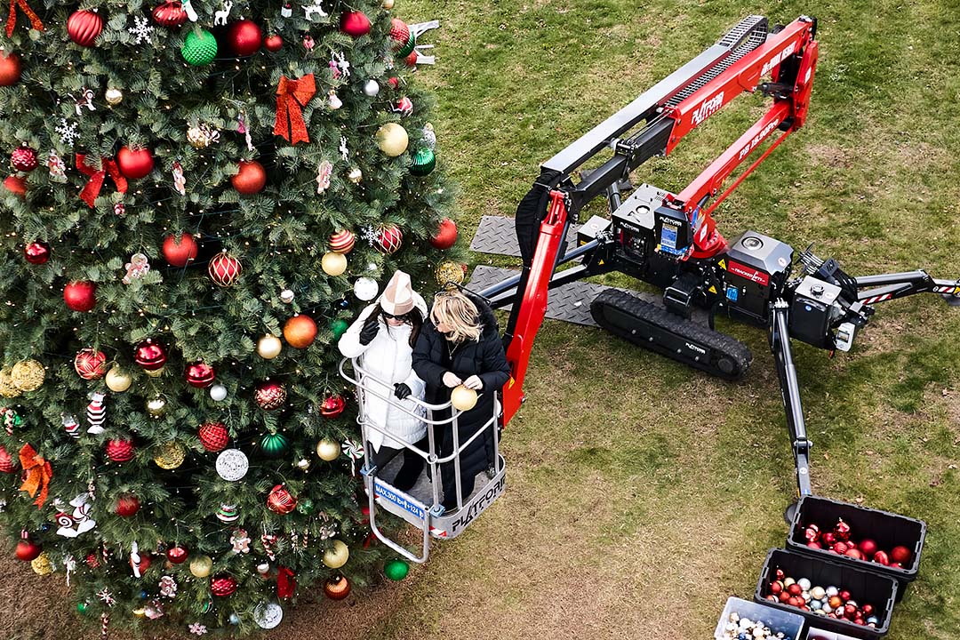 In the photos below, the Crown and Nestor families work with a crew to decorate the tree on the day after Thanksgiving. Scenes from last year’s popular family event can be found here.