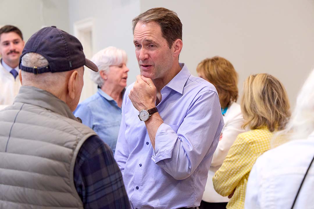 U.S. Rep. Jim Himes discussed a range of topics on April 18 at a Weston Kiwanis meeting, including Iran, the economy, Ukraine, immigration, surveillance, election security, and artificial intelligence.