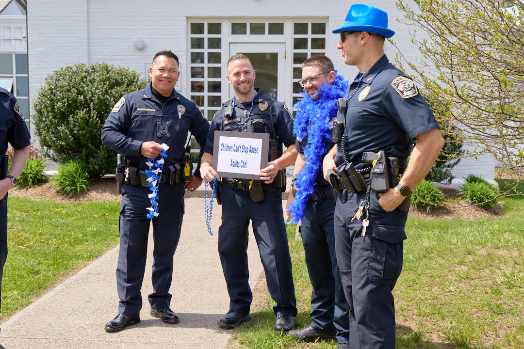 The Weston Police Department joined members of the Human Services Council for “Go Blue Day” on Thursday morning, signifying support for National Child Abuse Prevention Month and efforts to raise awareness and prevent mistreatment of children.