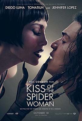 FULL DISCLOSURE: I didn’t like this John Kander-Fred Ebb musical with its wholly forgettable songs and a book by Terrence McNally when it was on Broadway, and I’m always acutely aware of Ms. Lopez’s minimal acting ability (as opposed to Chita Rivera and Sonia Braga) and lack of vocal range — which is why I lack enthusiasm for this vehicle — which director Hector Babenco made into a far more memorable, non-musical 1985 movie, starring Raul Julia and Oscar-winning William Hurt.
