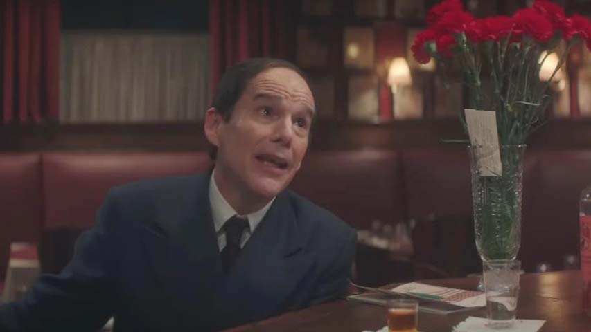 Diminutive, deeply troubled lyricist Lorenz Hart (Hawke) — who collaborated with composer Richard Rodgers (Andrew Scott) on many hit musicals including “Pal Joey,” “By Jupiter,” “Babes in Arms,” and “Jumbo” — commiserates with amiable bartender Eddie (Bobby Cannavale) and author E.B. White (Patrick Kennedy), while extolling the virtues of his current crush, much younger Elizabeth Weiland (Margaret Qualley), whom he calls his protégé.