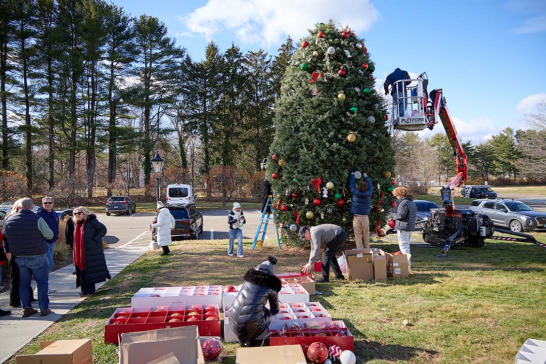 The tree is trimmed and ready for Thursday evening’s Holiday Music Festival & Tree Lighting on the Town Green, starting at 5:00.