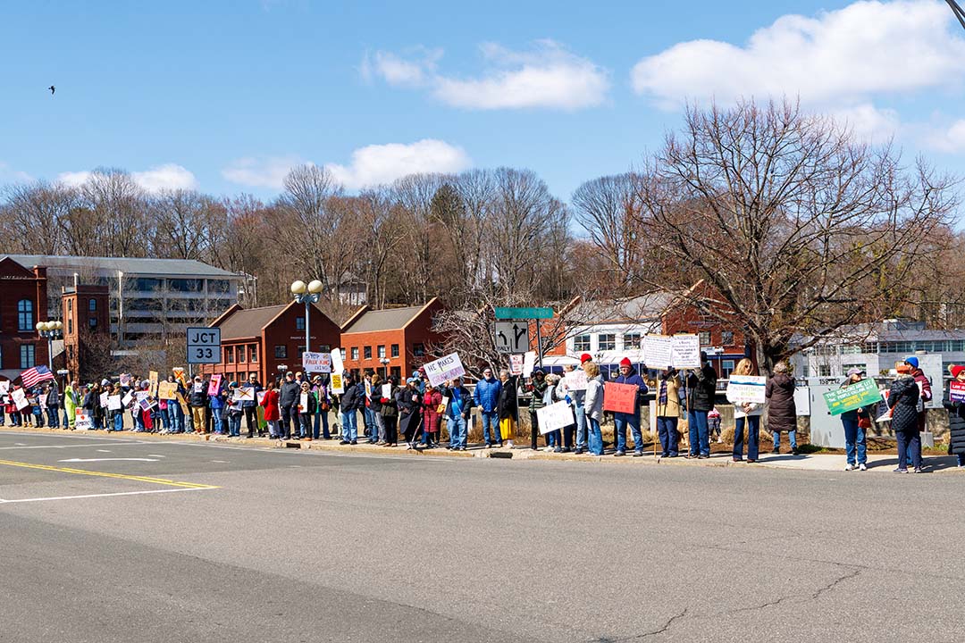 In one of about 3,300 nationwide protests, marchers gathered on the Ruth Steinkraus Cohen Bridge, on the Post Road, and at Jesup Green.