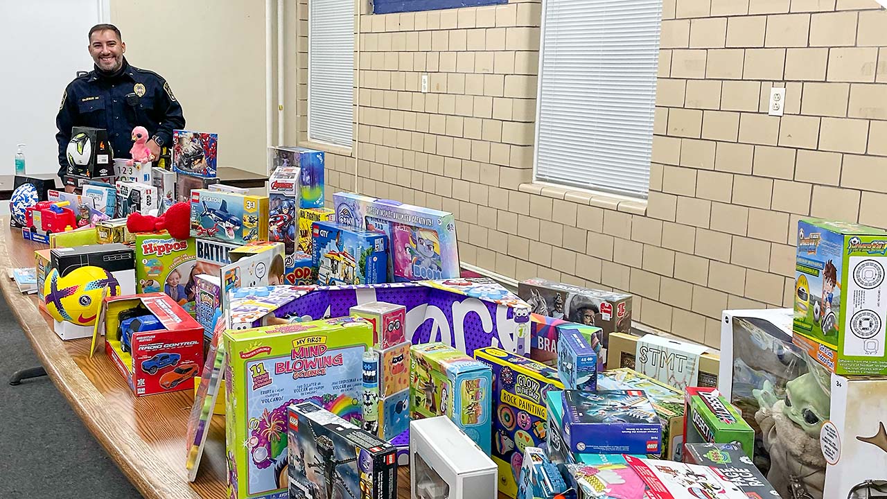 Officer Carlos DeJesus with donated toys. Contributed photos