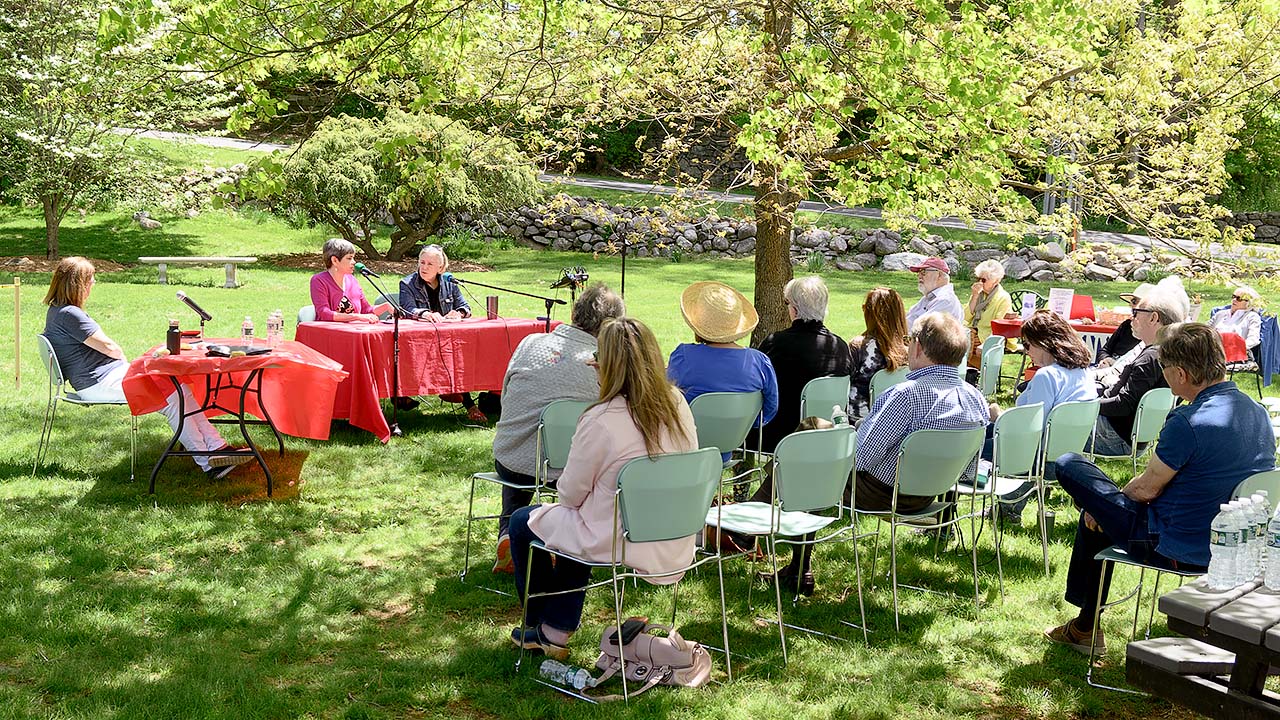 Questions and comments from the floor (the Library lawn — it was a nice day) included what the state can do to address a shortage of staffing at child care providers and make salaries more competitive to attract teachers. Senator Maher and Rep. Hughes said there is a need to invest, including in workforce training, and that there is also a loss of nurses and social workers.