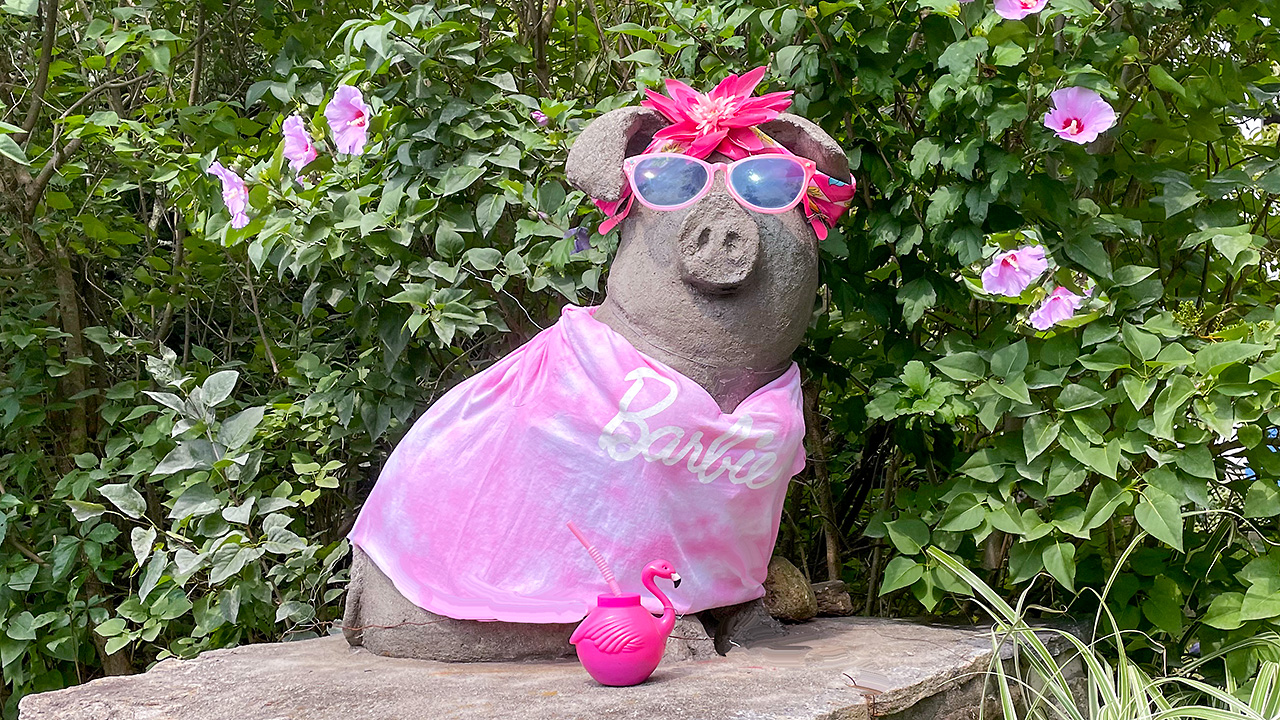 The well-dressed figure on Kellogg Hill Road has a website and an interesting story of her own. She memorializes a pig who lived on the property long, long ago, and once saved a young man named Ebenezer.