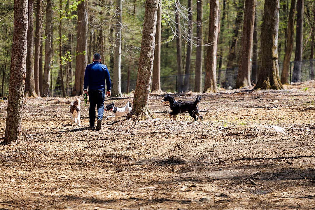 A procession of guests and dogs was led up the driveway by Maria Calamito (center in the photo above), a principal in the group of citizens who first proposed the dog park in 2017. The group later initiated a 2018 Special Town Meeting where voters approved the plan, which included a commitment by the volunteers to raise funds needed to build the park.