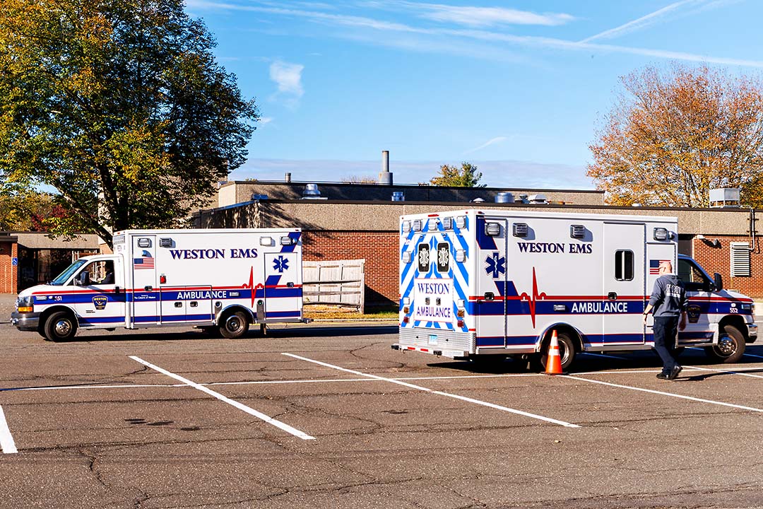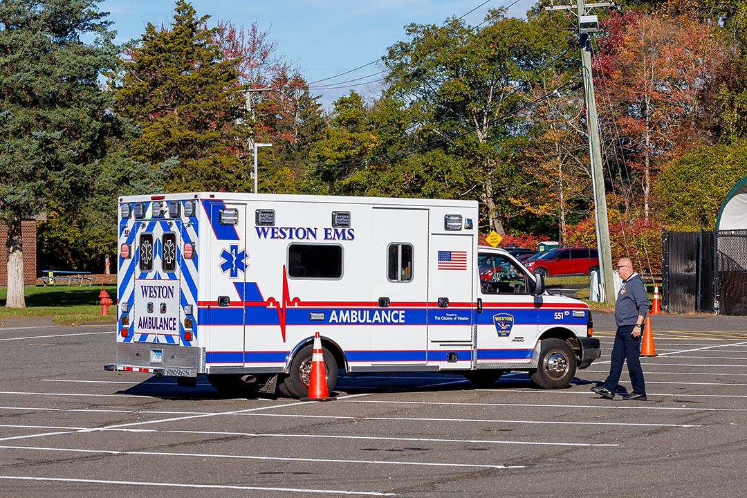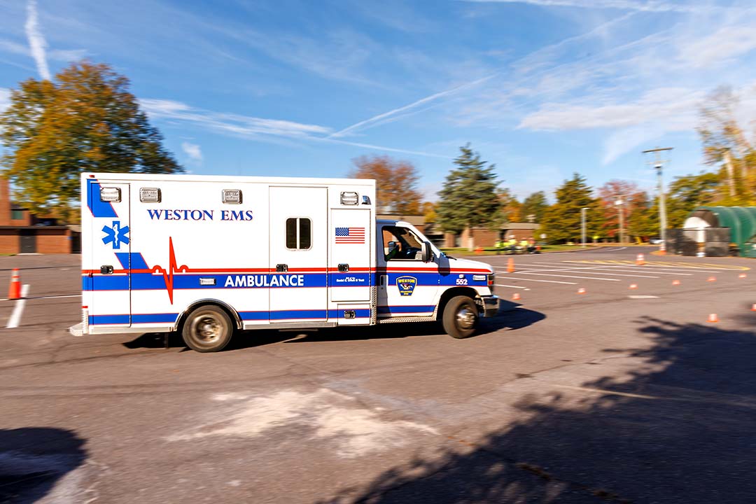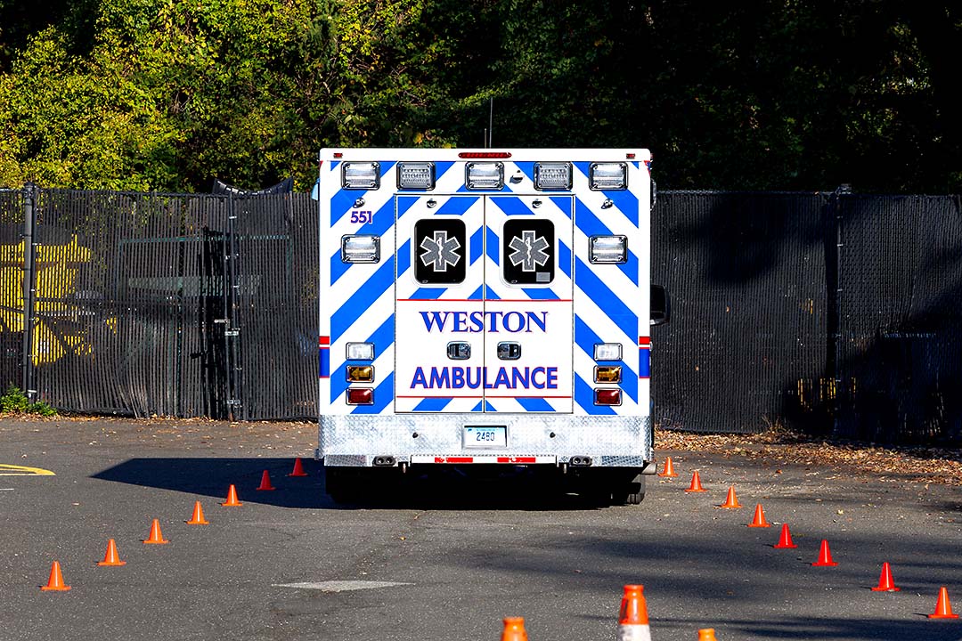 Ambulance activity behind Weston Middle School this weekend is a training program for Weston EMS volunteers, an Emergency Vehicle Operators Certificate (EVOC) class.