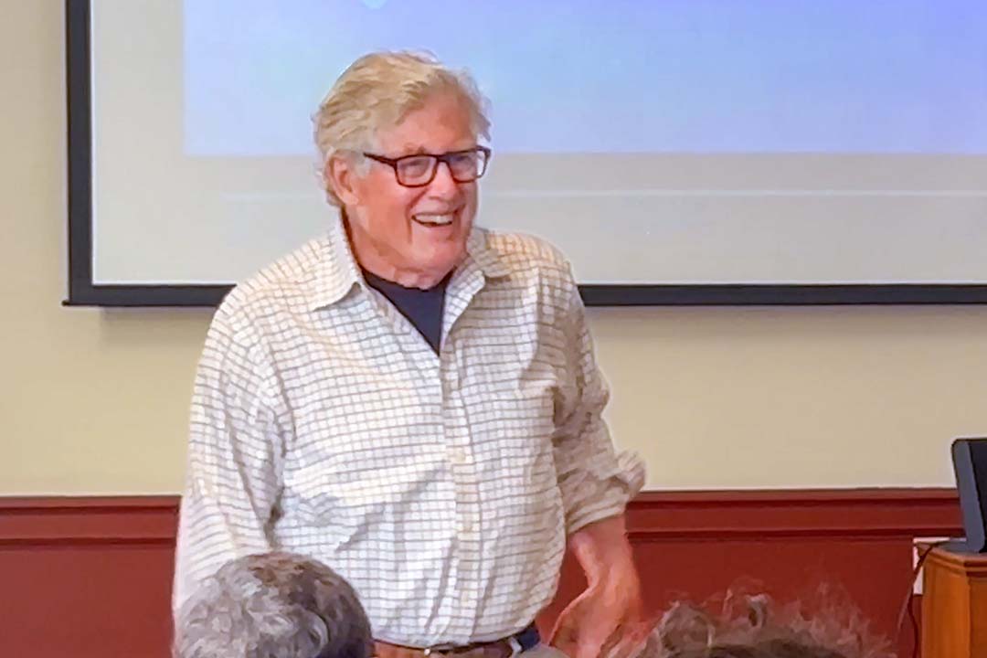Mr. Converse at Weston’s Founders Day in 2021, paying tribute to his friend, the late Christopher Plummer. Weston Today photo.