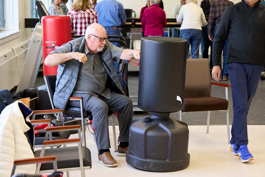 Boxing is one element of Dr. Gianchandani’s Thrive with Movement program at the senior center, along with light weight training, and movement, balance, and mobility drills.