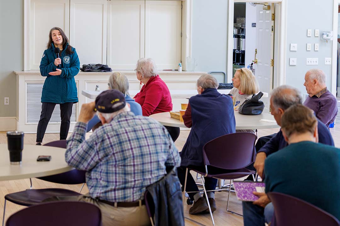 “We take in all species of wildlife,” Ms. Reid told club members. The injured hawk, now fully recovered after being struck by a car, is one of thousands of birds and animals taken in each year at the care facility founded by Ms. Reid in 1988.