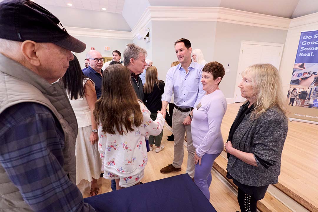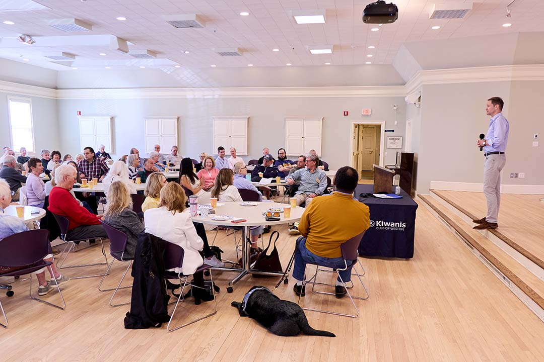 U.S. Rep. Jim Himes discussed a range of topics on April 18 at a Weston Kiwanis meeting, including Iran, the economy, Ukraine, immigration, surveillance, election security, and artificial intelligence.