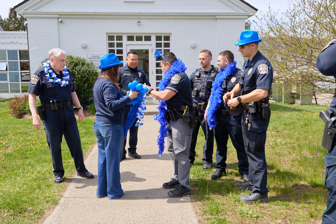The Weston Police Department joined members of the Human Services Council for “Go Blue Day” on Thursday morning, signifying support for National Child Abuse Prevention Month and efforts to raise awareness and prevent mistreatment of children.